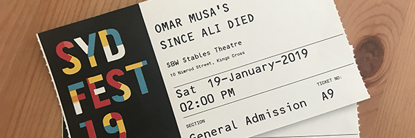 Since Ali Died is at Parramatta Riverside Theatres from 22-25 Jan and I’m tempted to see it again there in the knowing that the audience might be more of a ‘home-crowd’. It’s the sort of show that needs a certain type of energy from the audience to feed it, and Musa is the sort of performer that goes from really, really, good to pretty fricken brilliant with that.